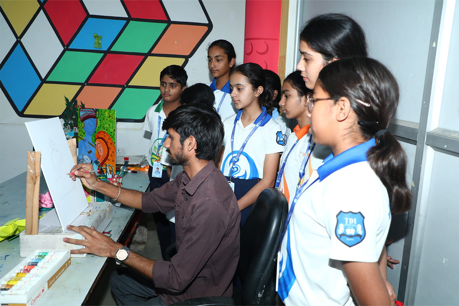 TDI International School firmly believes that to bring out the complete potential of a child, it is important to allow them to express themselves through different art forms. Art and craft is as essential as Sunshine. It is an indispensable part of a child’s learning process and as vital as nourishing the mind, body and soul. The school has an art department that buzzes with creativity and infuses creativity in the young minds and hearts. The various fields in which students get trained are: